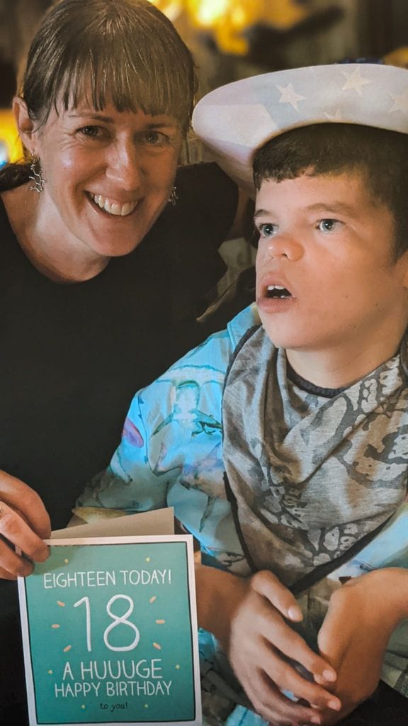 Finn is now completely reliant on carers for every aspect of his life. “He has four- limb motor disability – he can’t control his movements and has no fine-motor skills, so can’t feed himself for example. He also uses a wheelchair at all times.