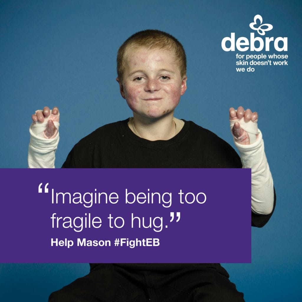 The family have also benefited from DEBRA’s support services. “They have been there for us every step of the way, helping us financially with things Mason needed, and providing emotional support via their brilliant welfare officer and counsellor. They’ve also helped with practical issues like filling in benefits forms for us and helping me get a blue badge.