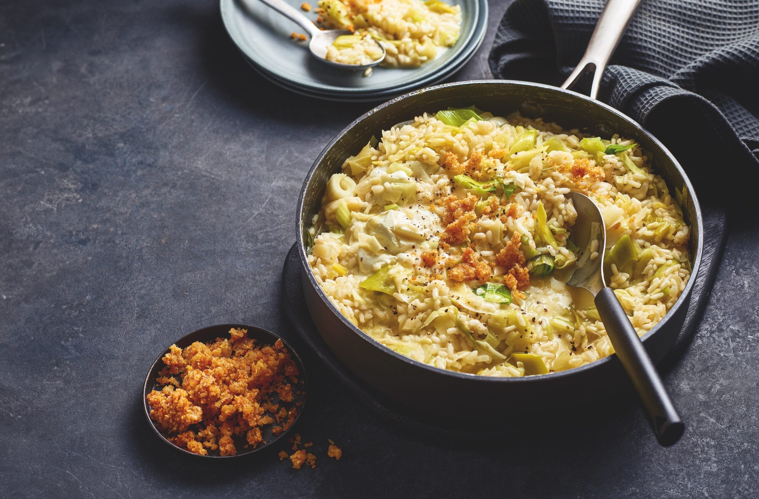 Soft, buttery leeks partner perfectly with creamy risotto rice
