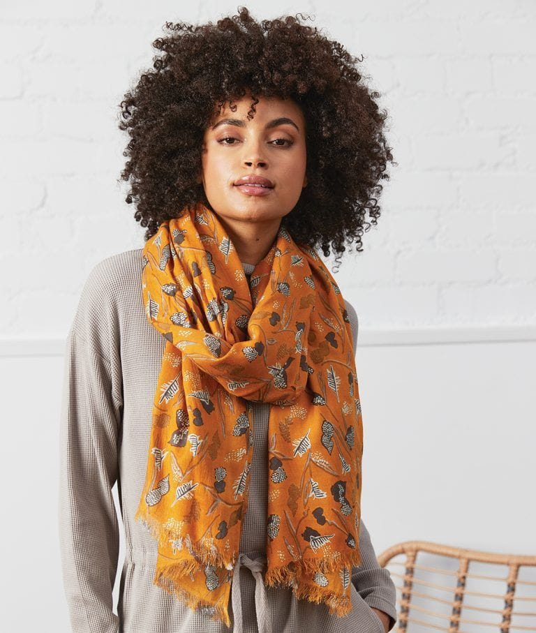 This dainty Printed Scarf in a beautiful butterscotch shade will add colour and enhance your winter outfit. £23.50 nomadsclothing.com