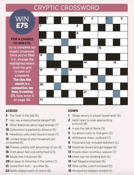 For a chance to win £75, try to complete our cryptic crossword
